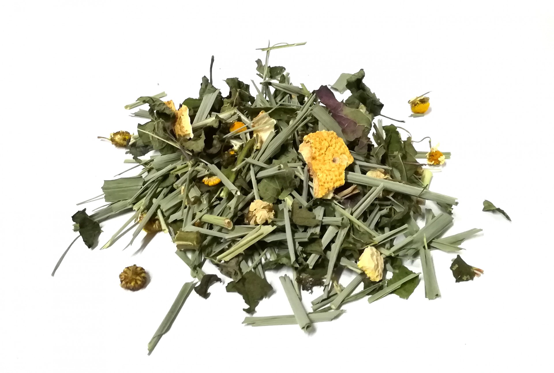 Ingredientes: Erva Príncipe, casca de Limão, Camomila, Hortelã Aquática e Cidreira